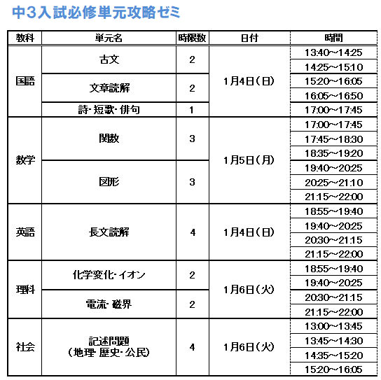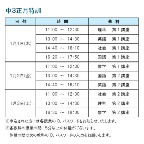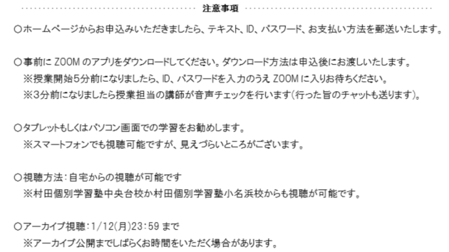 オンライン冬期講習 申し込みフォーム