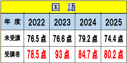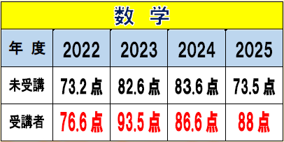 中学準備講座受講者と未受講者の1学期中間テストの平均点
