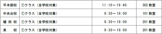 ■定員:平本部校(5名) 中央台校(5名) 植田校(5名) 泉校(5名)